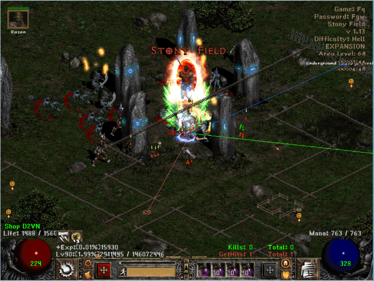 - Hoàn thành Quest thứ 3 – ATC 1. Ở vị trí 5 cột đá (Ngũ Hành Sơn) sẽ có cổng màu đỏ dẫn vào nơi mà Deckard Cain bị giam giữ gọi là The Tristram.