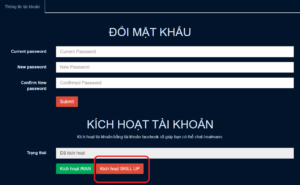 Sau khi đăng nhập xong bạn sẽ có giao diện như hình, bấm vô ô KÍCH HOẠT SKILL UP