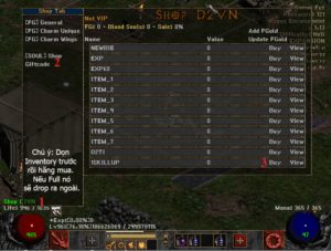 Sau đó bạn đăng nhập vô game, chọn nhân vật muốn nâng SKILL UP, và thao tác theo thứ tự : SHOPD2VN -> GIFTCODE -> SKILL UP -> BUY để nhận