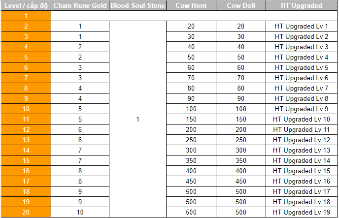 Nguyên liệu để UPGRADE Skill lên level 20: